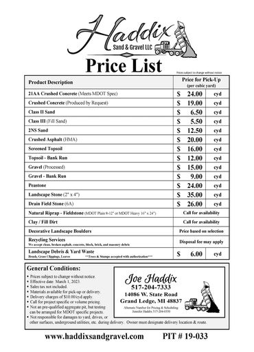 HADDIX SAND & GRAVEL PRICE LIST 3.01.2023 (pdf)
